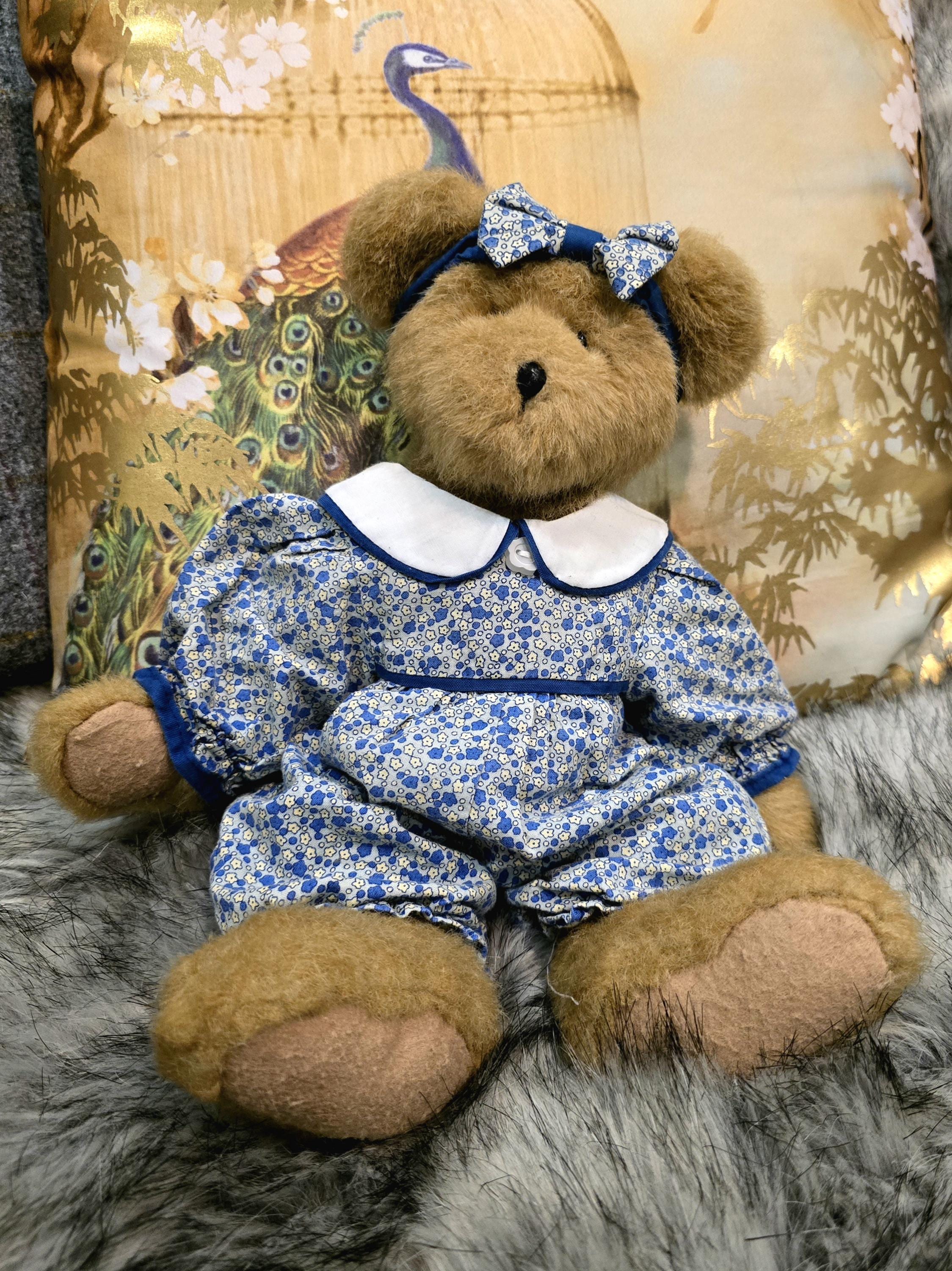 Vintage Boyds Bear in Blue Floral Romper Suite. 1988, 38cm Standing