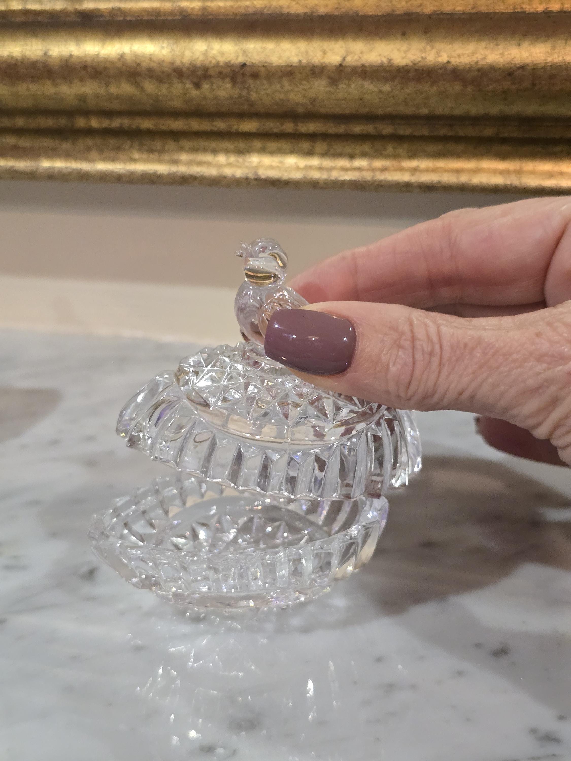 Set of 3 Petite Glass Bird Lidded Vessels – Ornate Cut Crystal Trinket Jars