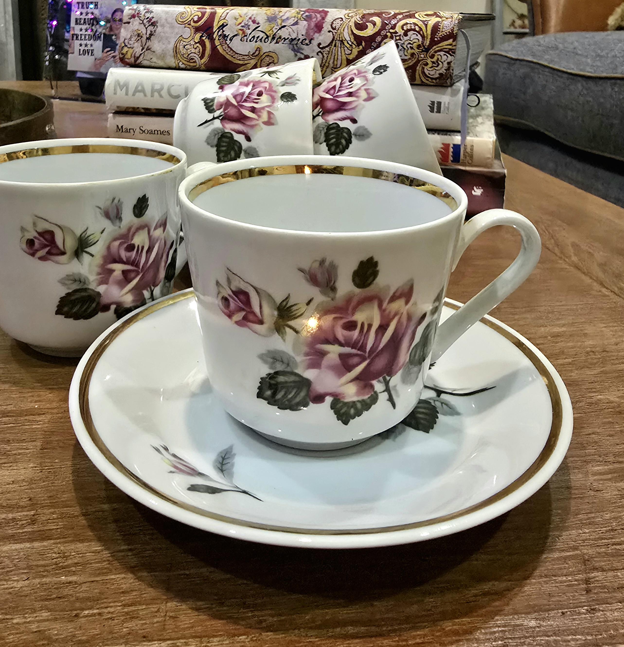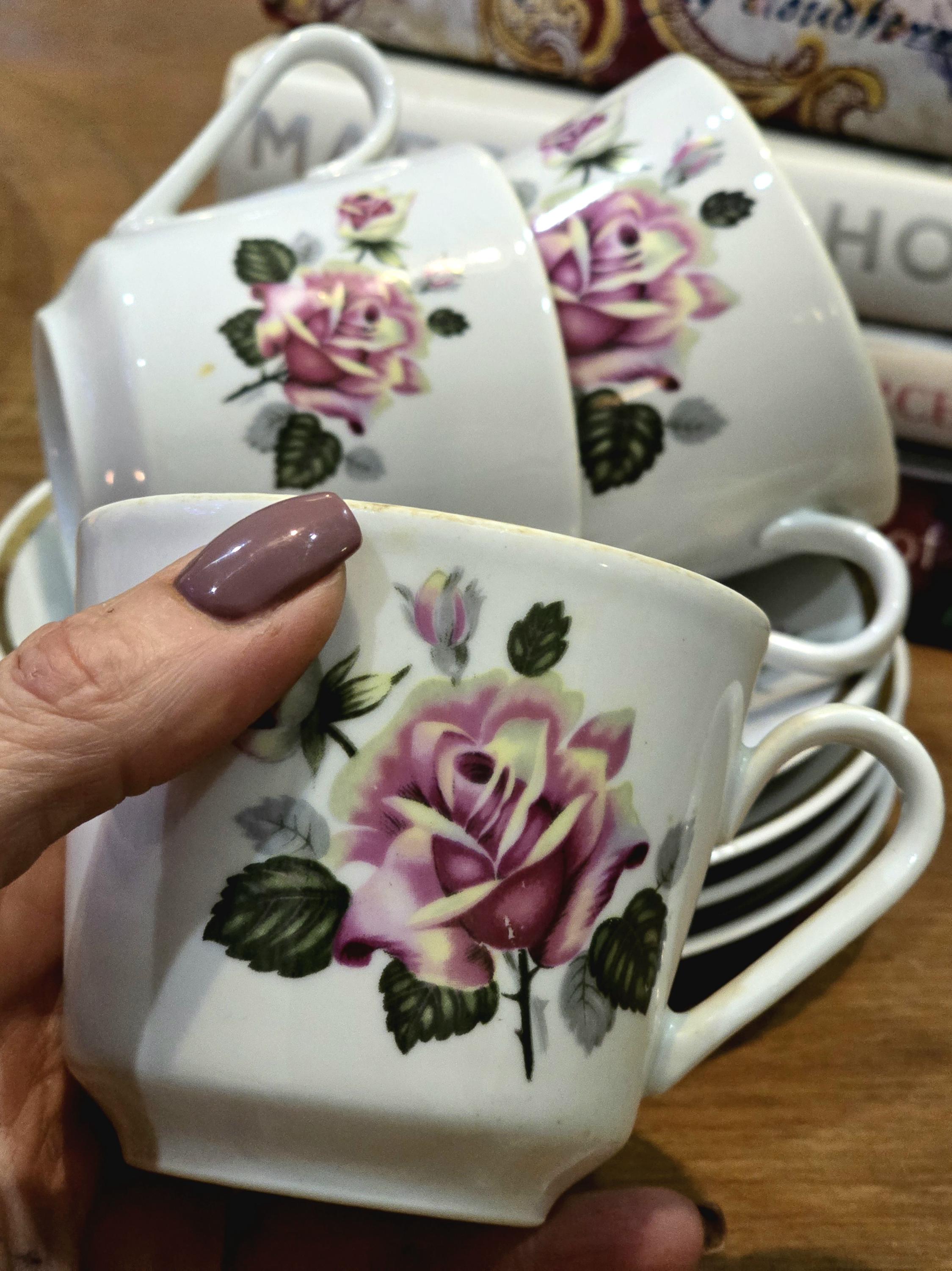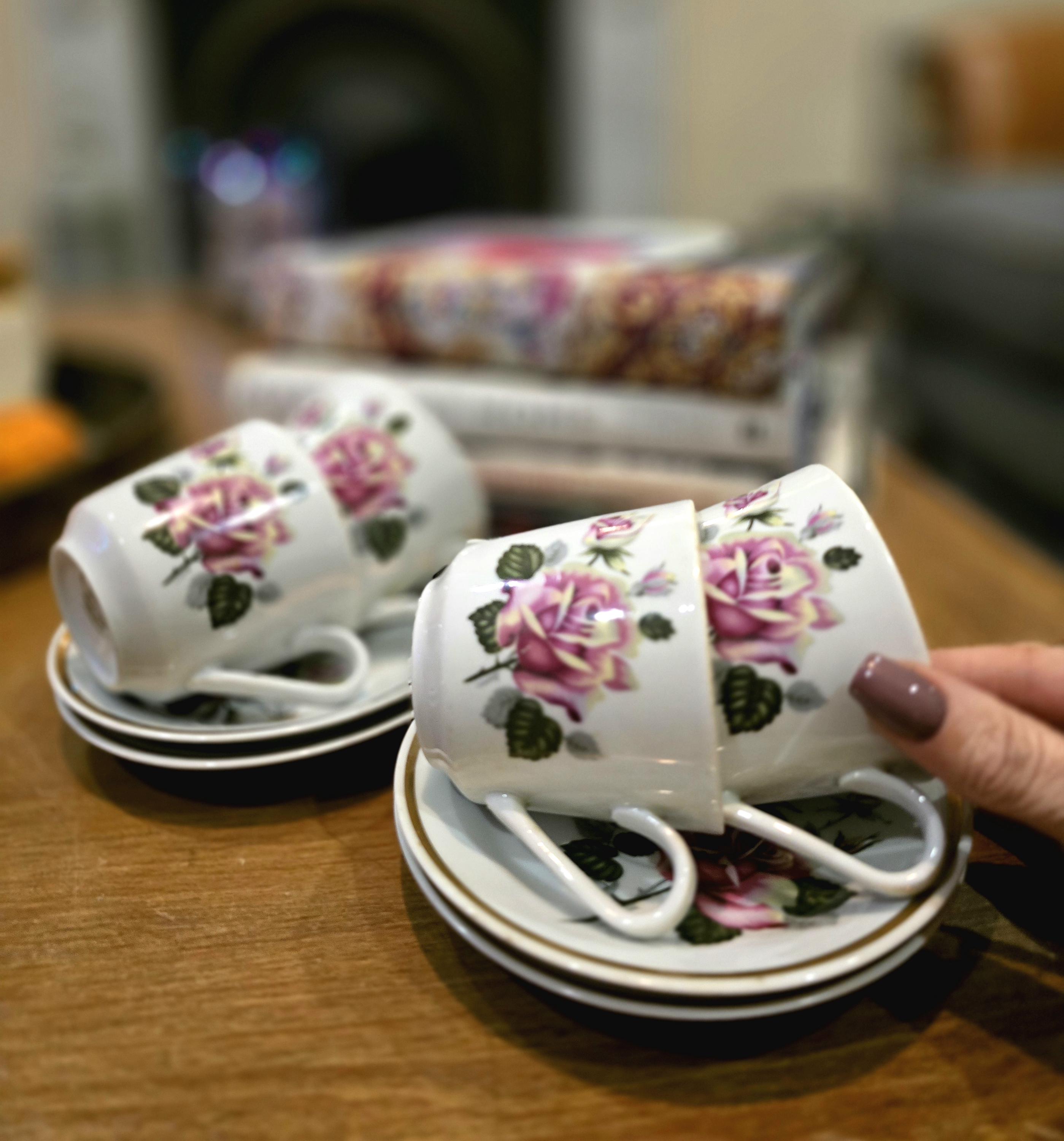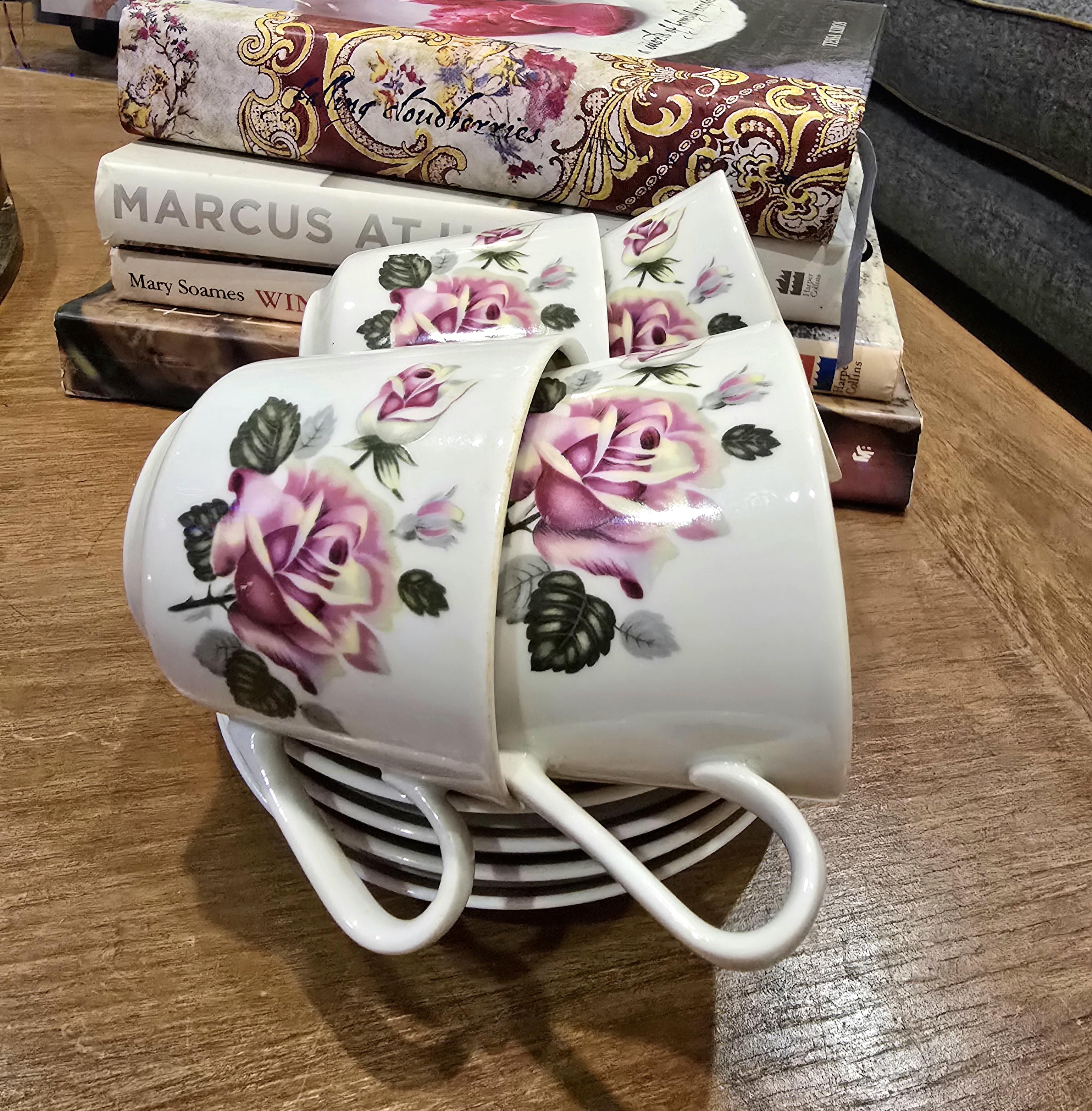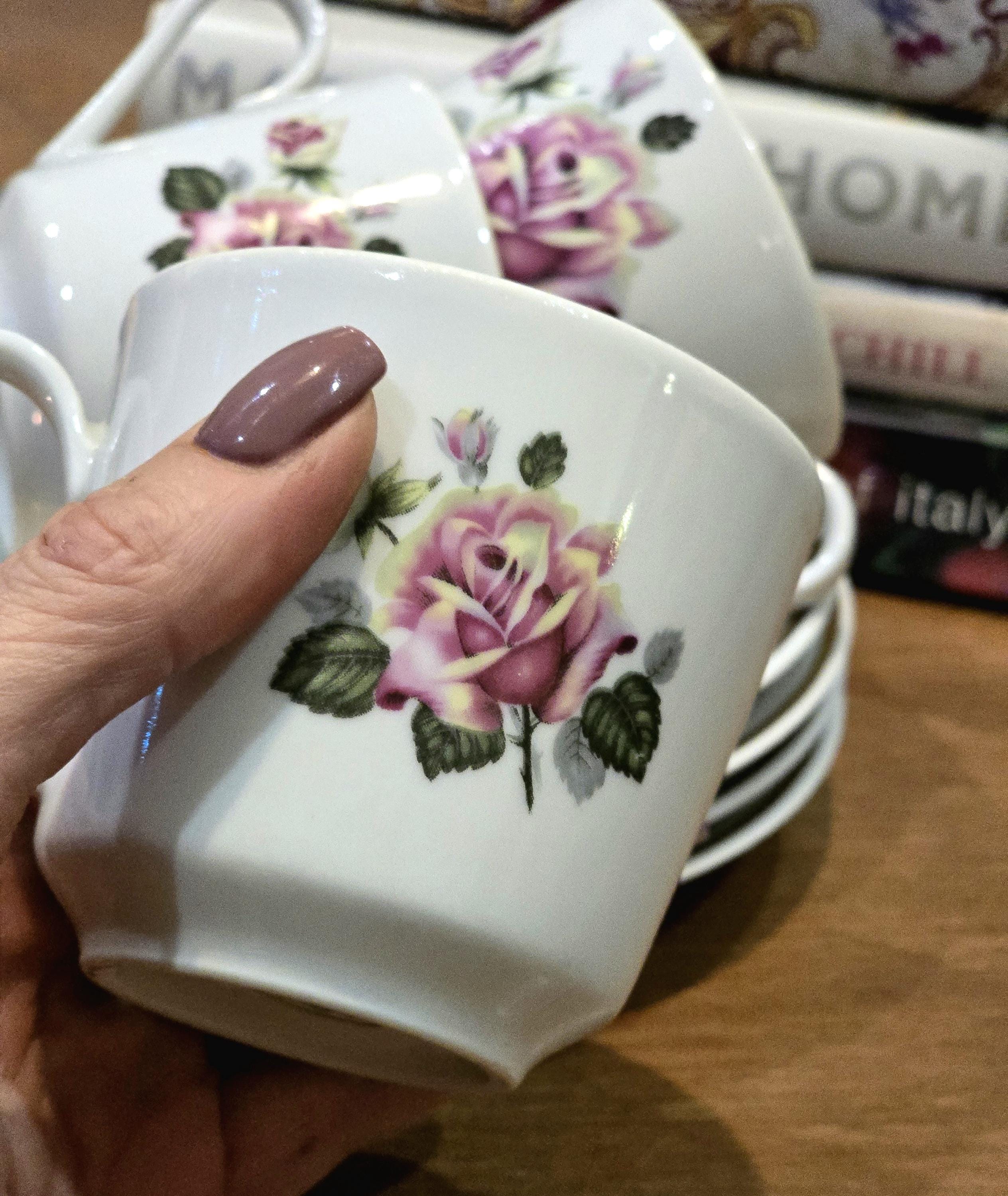 Four Vintage Rose Teacup & Saucer Set – Gifts for Her – Femme Within