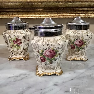 - Pattern: Pink & yellow rose motif with gold trim