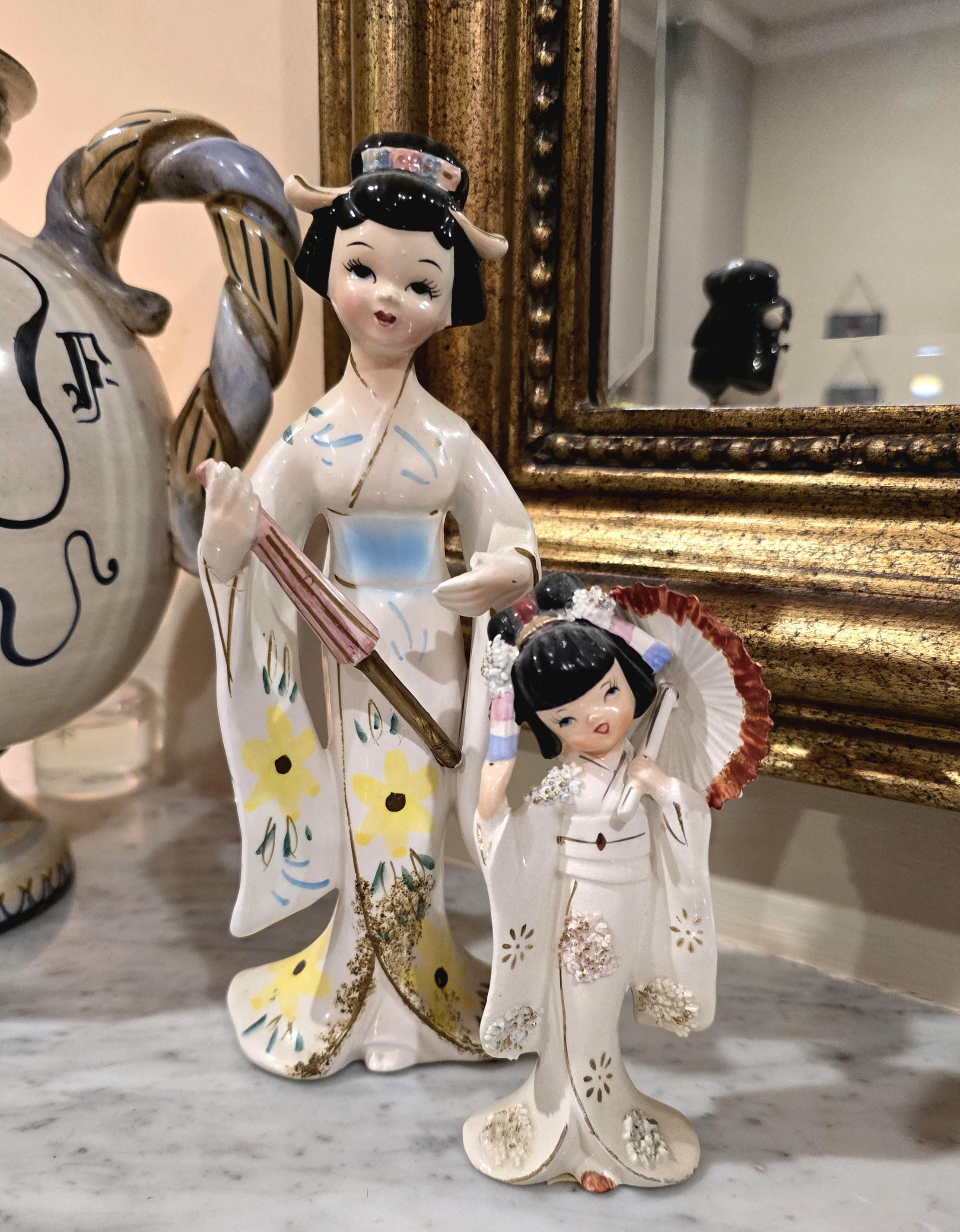 Japanese Geisha Bone China Figurine Set in Kimono – Woman 24cm & Child 15cm | Oriental Decor