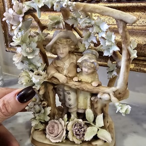 A poised sanctuary duo in glazed bone china: a Japanese geisha woman (24cm) and child (15cm), each robed in traditional kimono attire. Their serene expressions and hand-painted floral details evoke quiet grace and timeless ritual. A collector’s pairing for mantel, shelf, or sacred corner.
