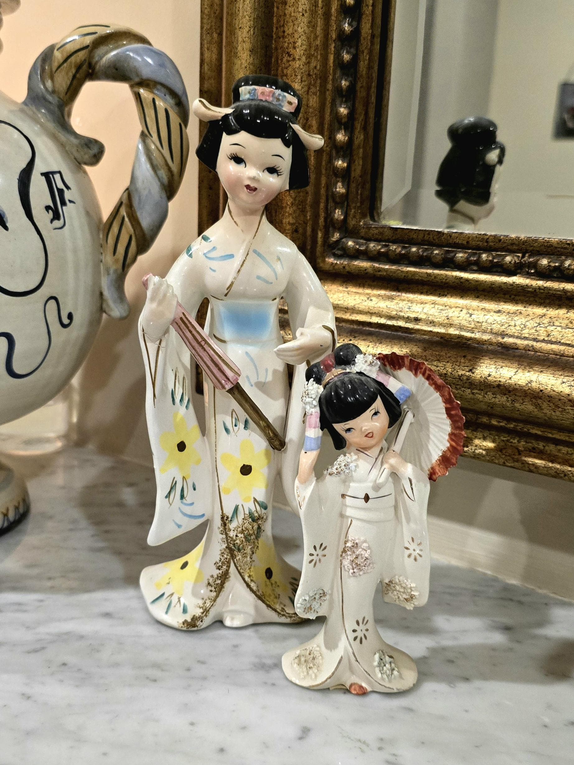 - 👘 Japanese-style bone china figurines: adult approx. 24cm, child approx. 15cm