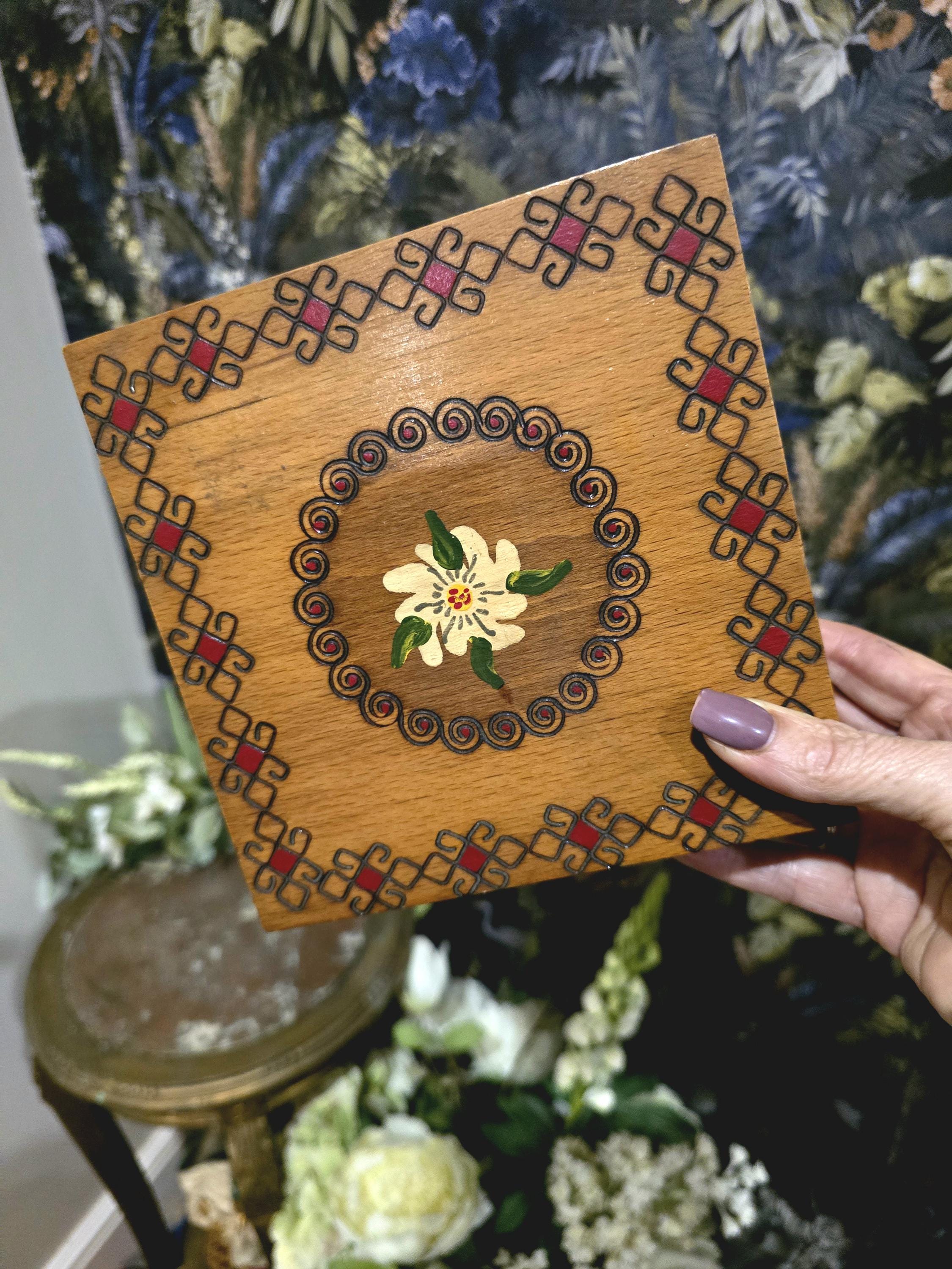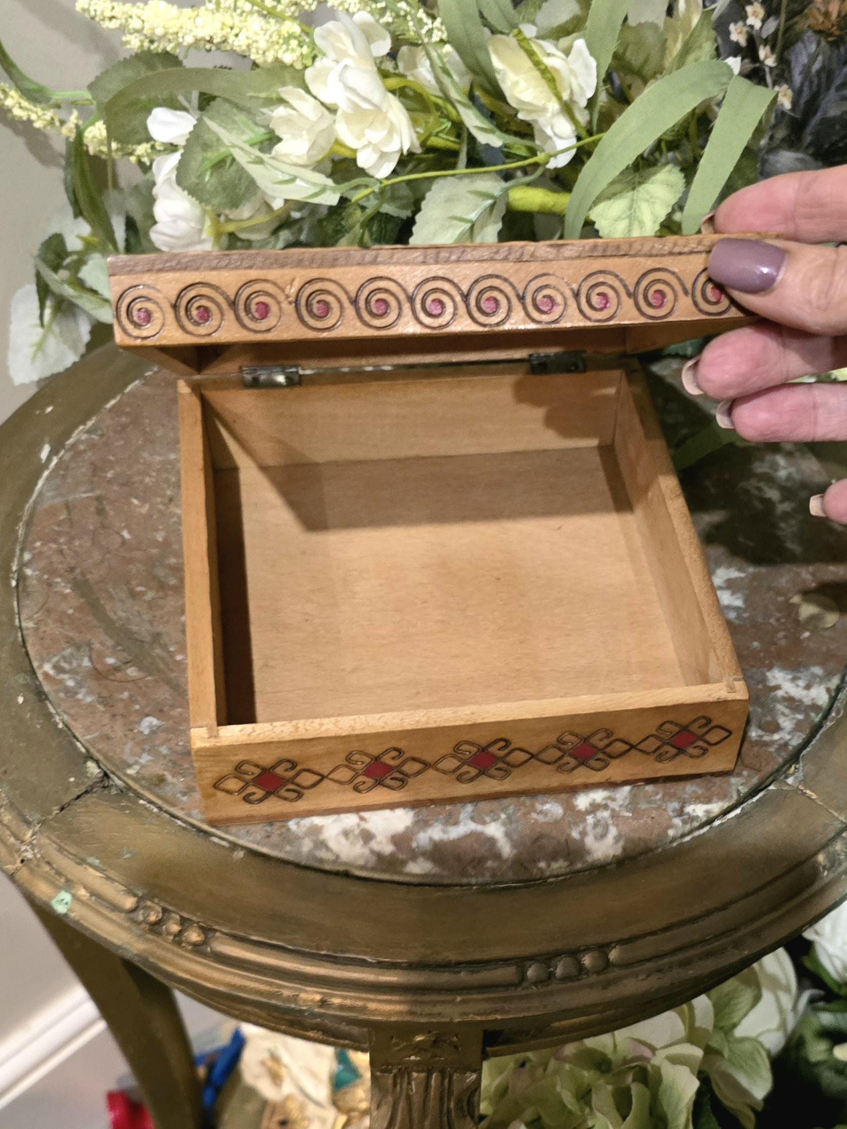 Vintage Wooden Trinket Box Folk Art Style - Unique Storage & Home Decor 6.5 inches square
