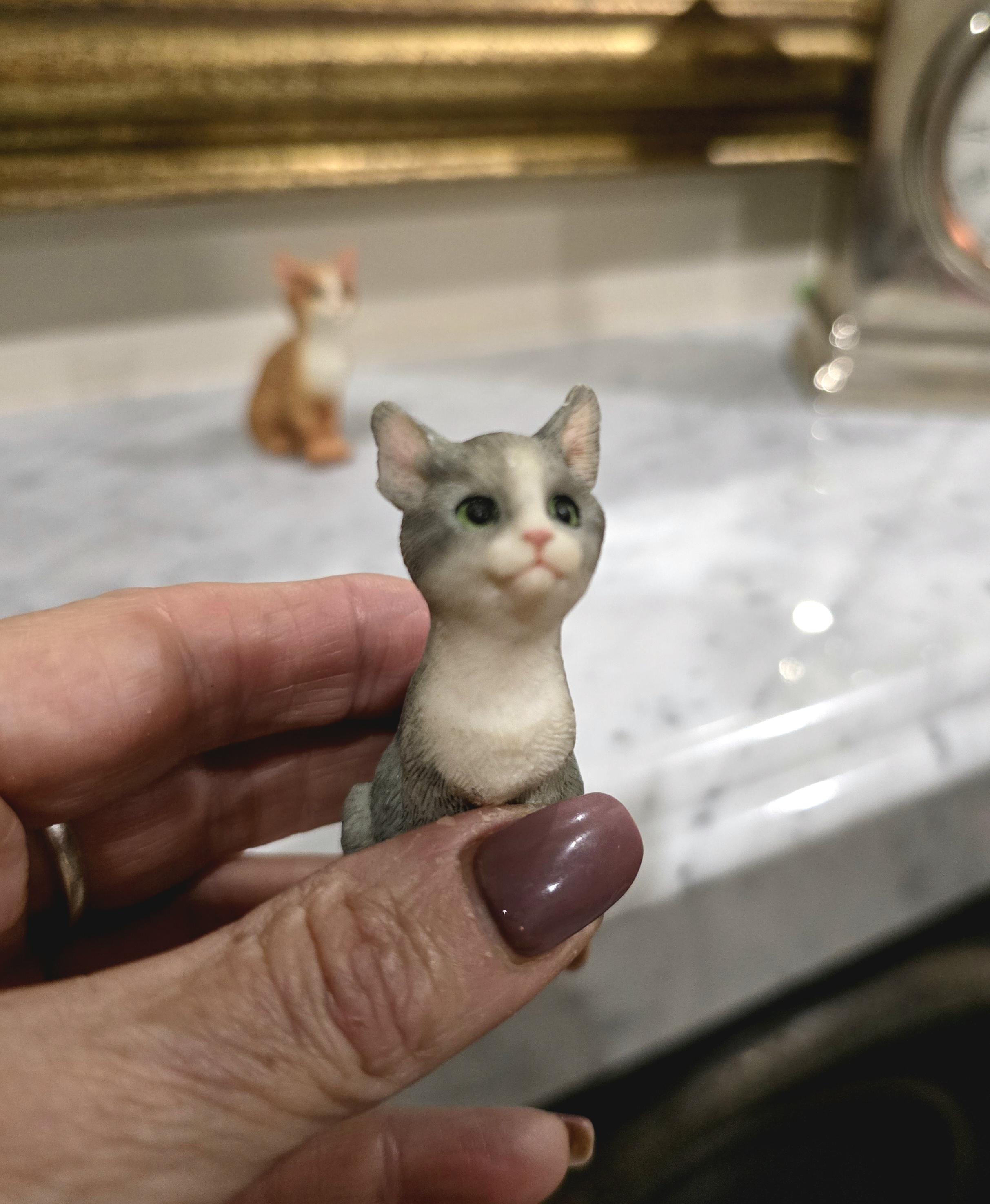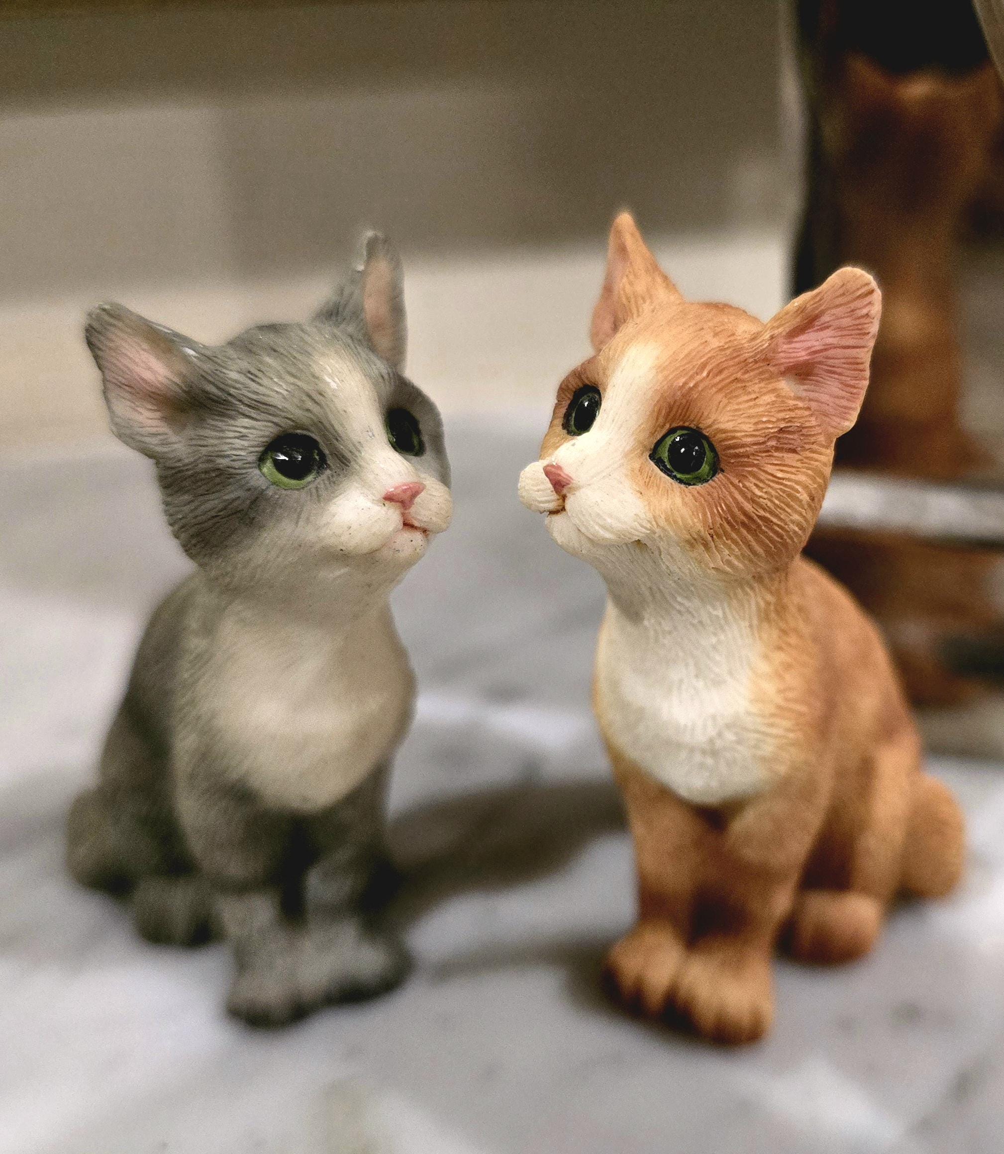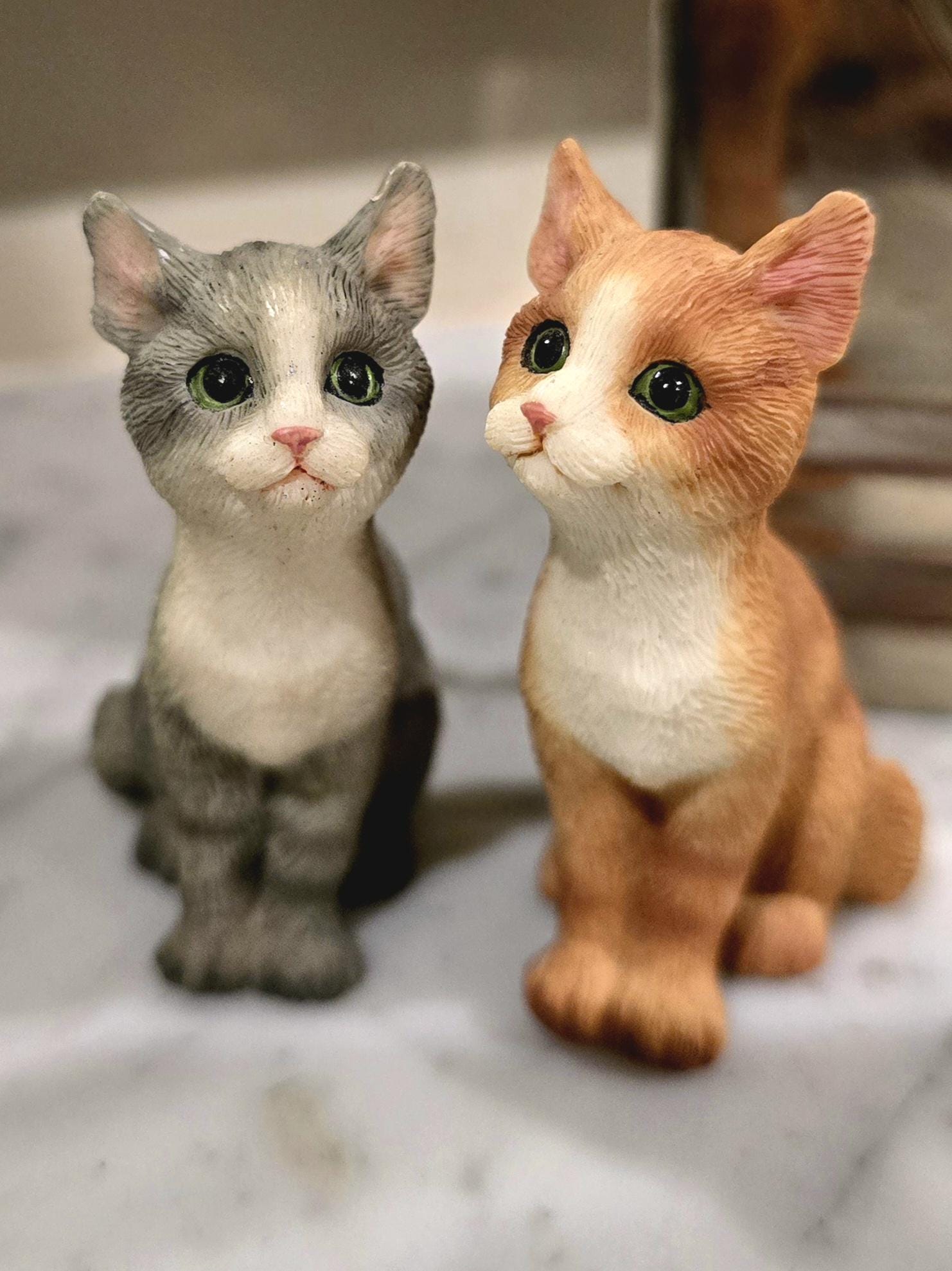 Realistic Kitsch Resin Cat Figurine Pair – Grey & Ginger – 3" / 7.5cm Tall – Femme Within