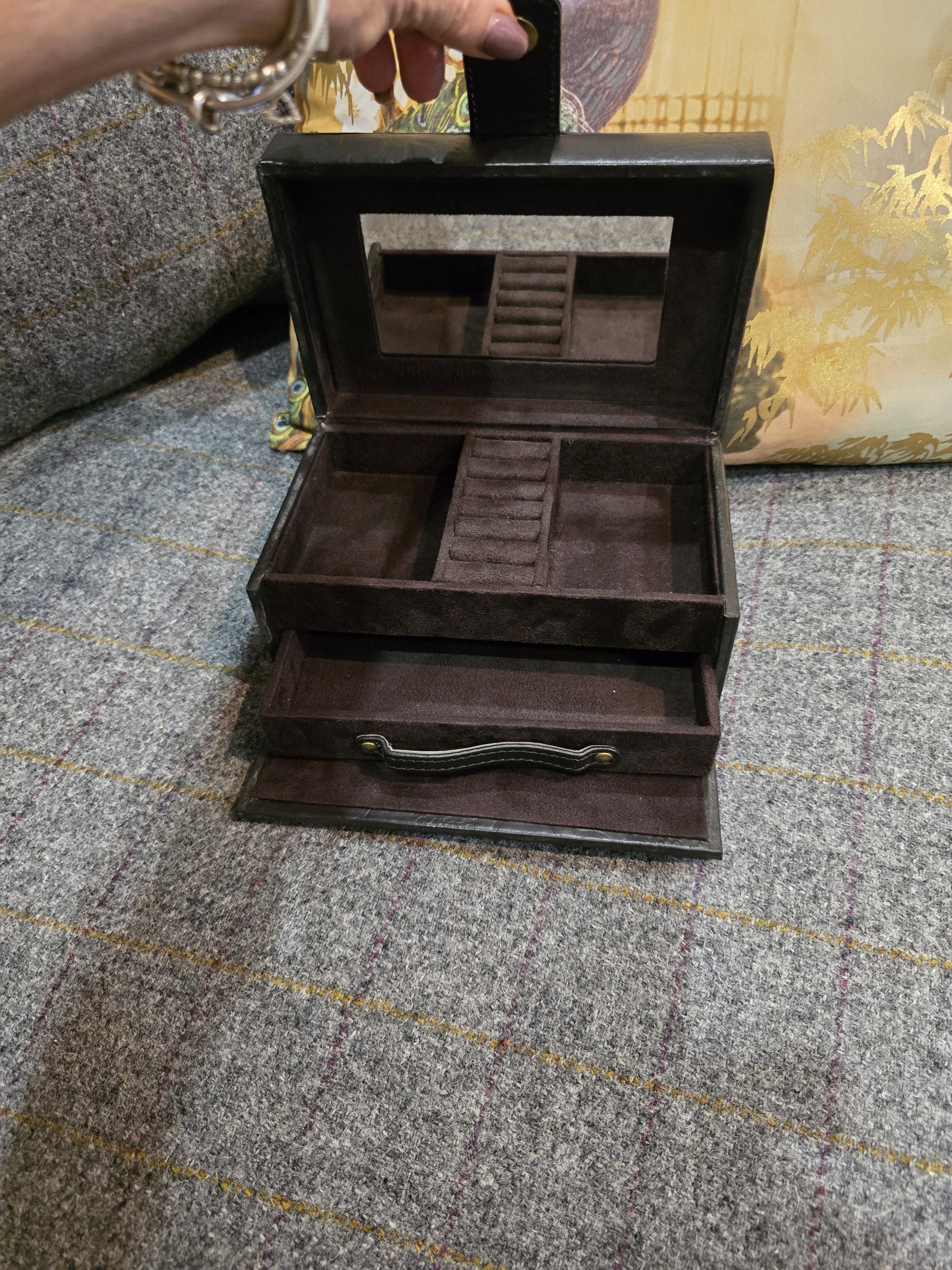 Elevate your vanity with this stunning vintage John Rocha genuine leather jewellery box. A sophisticated and practical storage solution, this piece embodies a timeless elegance perfect for the discerning collector. ✨