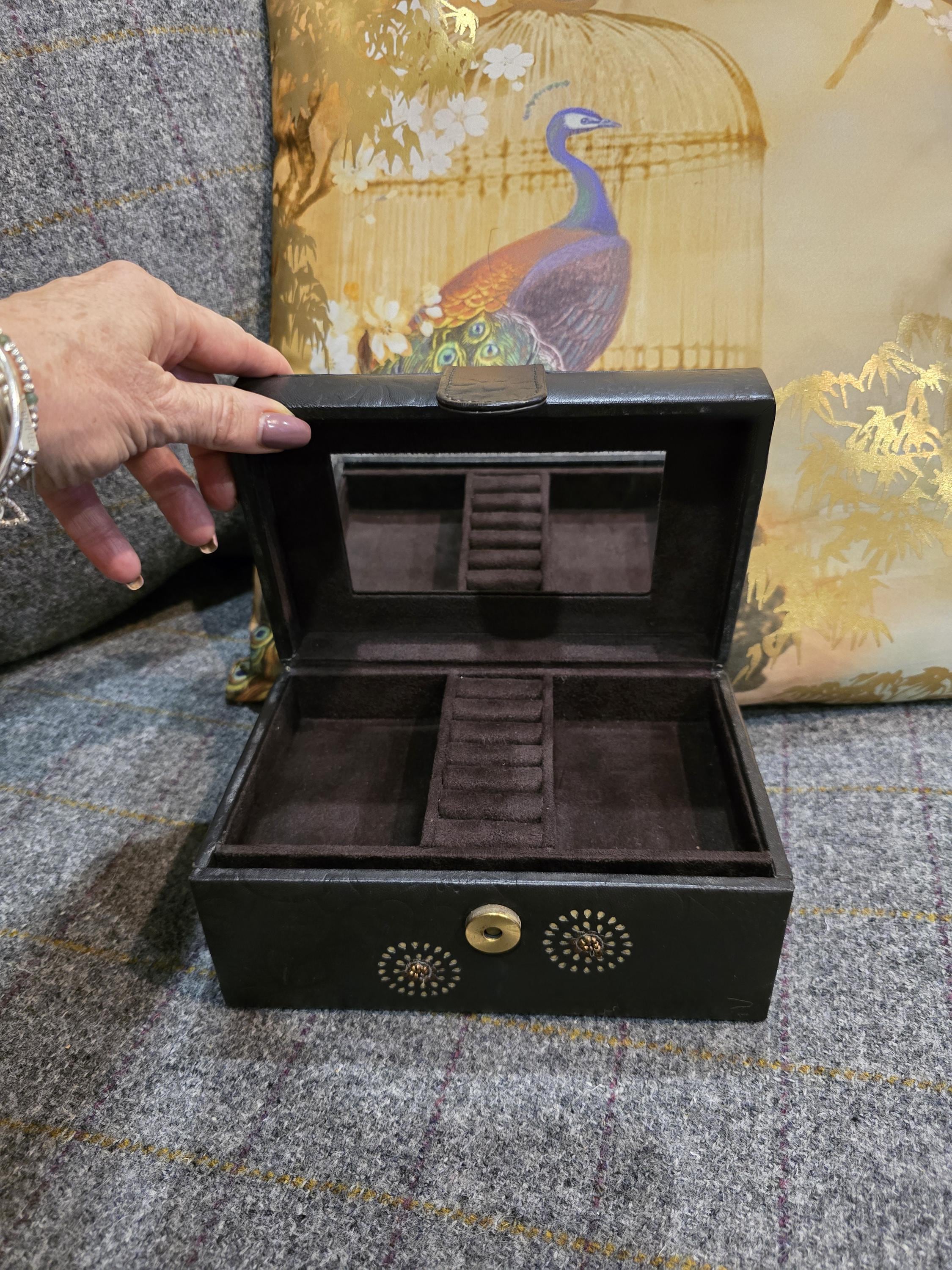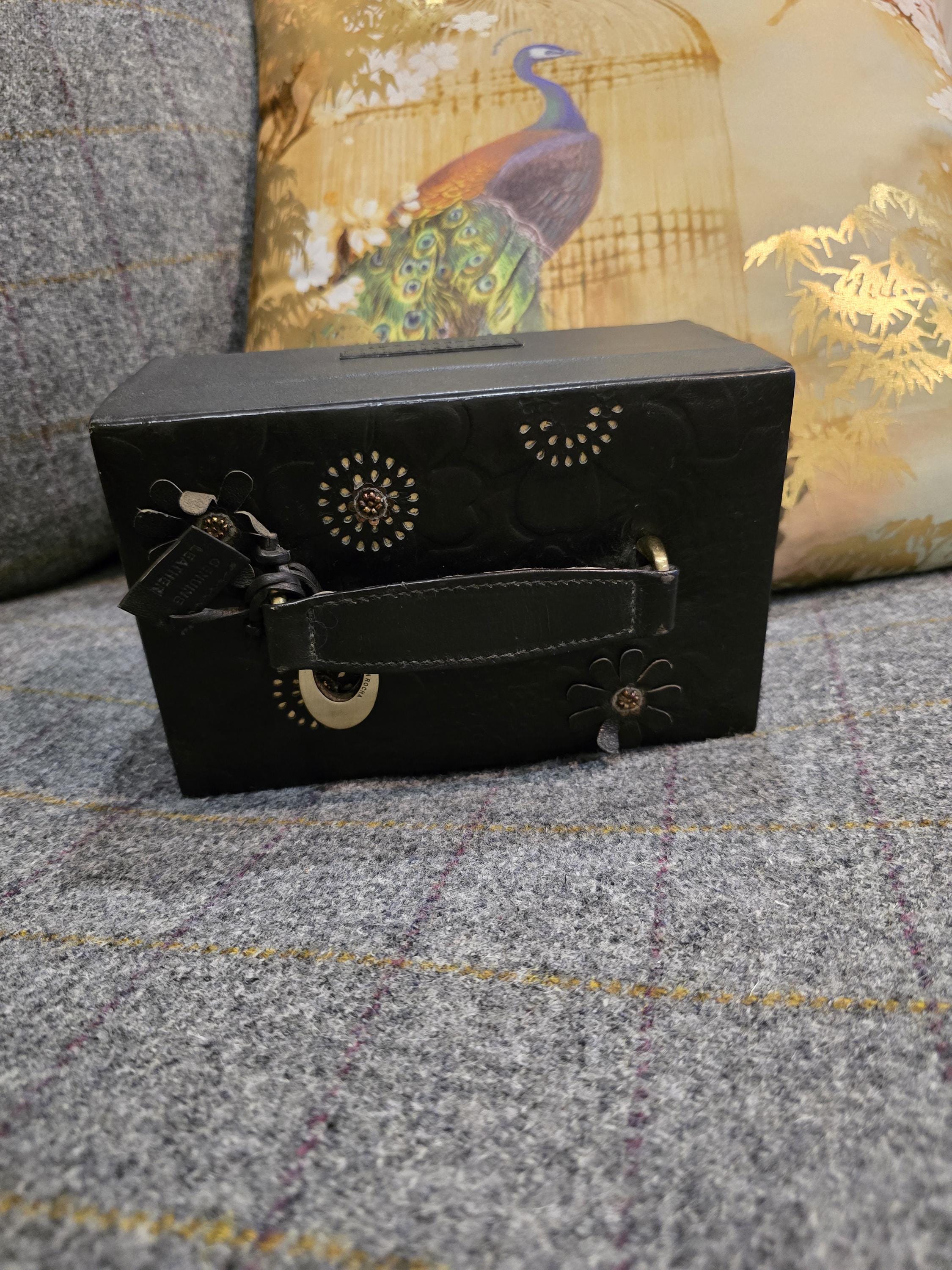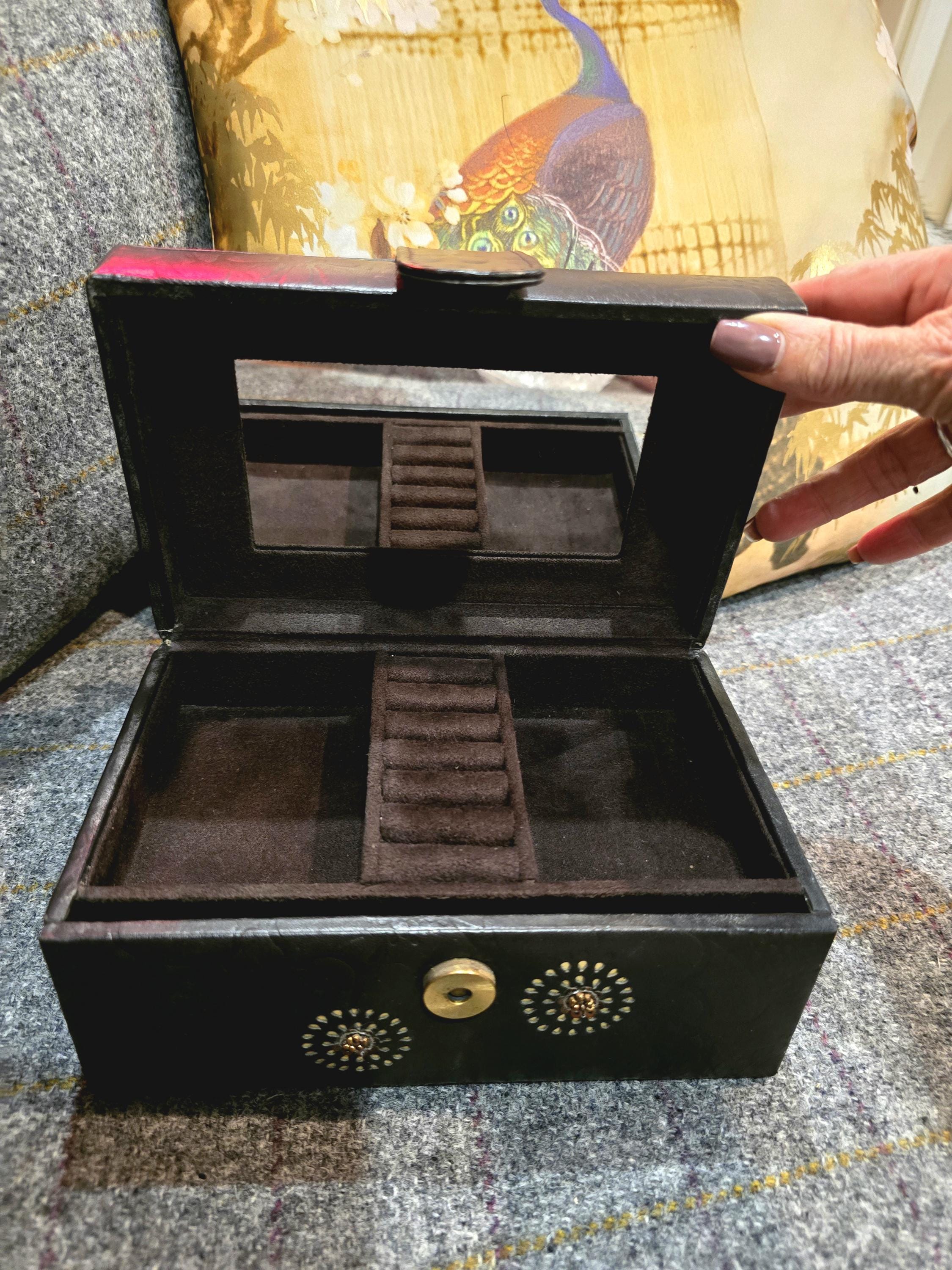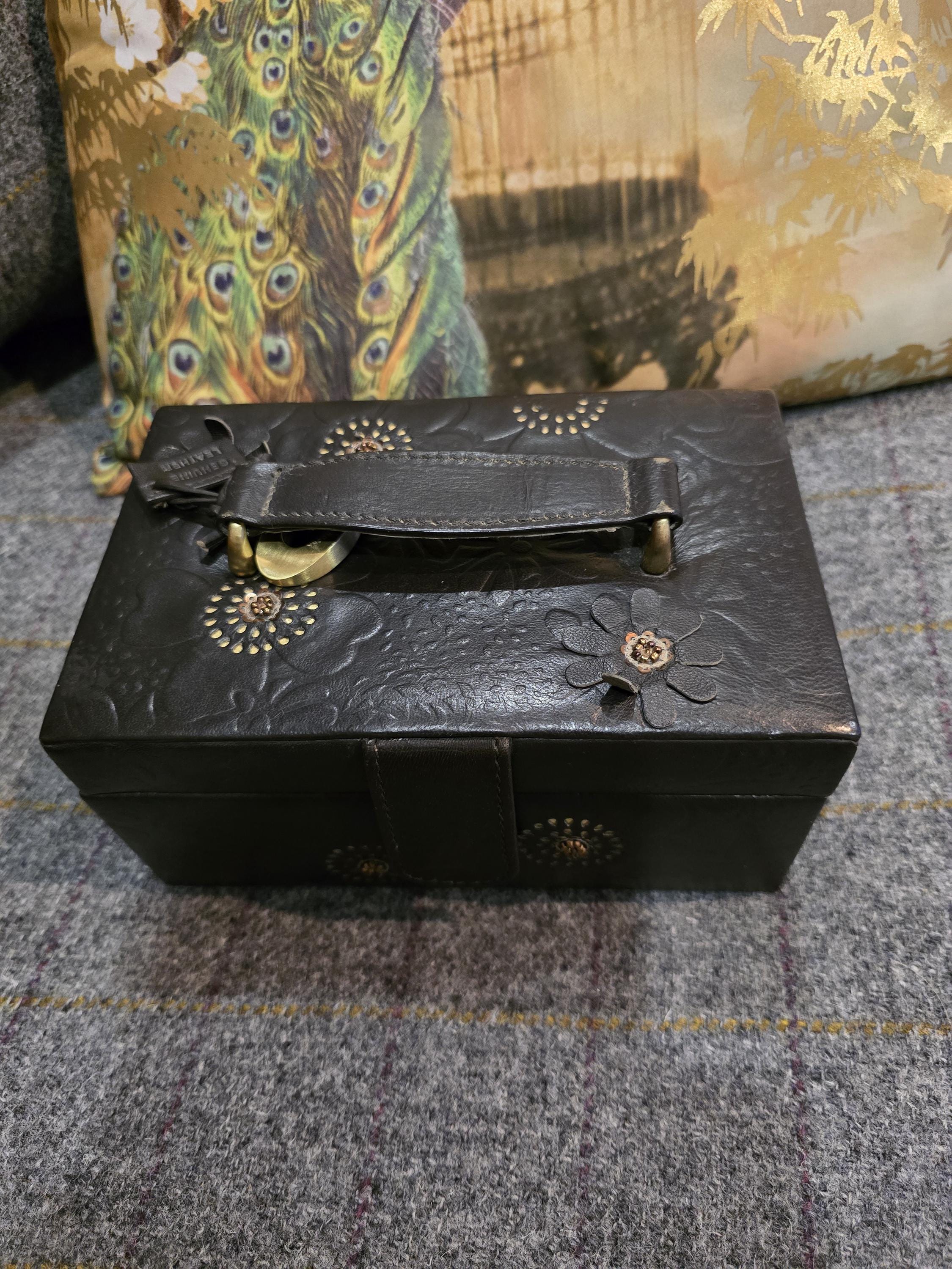 Vintage John Rocha Leather Jewellery Box – Embossed Floral Design