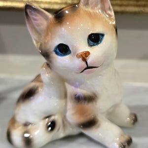 Their tails curl like handles, echoing the style of novelty creamers, though these are decorative figurines rather than functional vessels. One winks mischievously, the other gazes with quiet charm – together they embody mid‑century kitsch, whimsy, and theatrical flair.