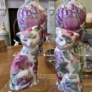 Porcelain Cat Pair Figurine – 13cm Kitsch Companions with Rose Detail