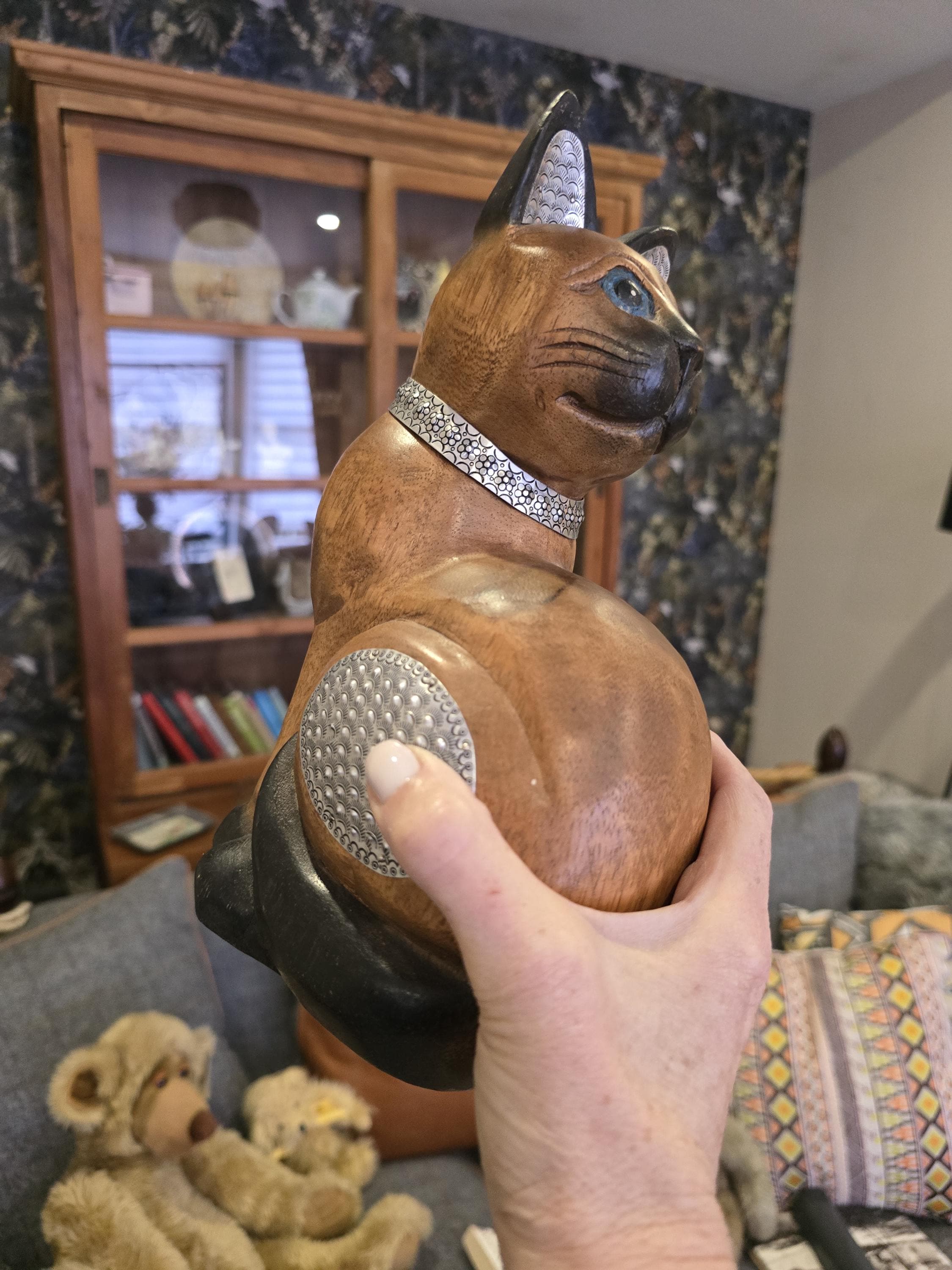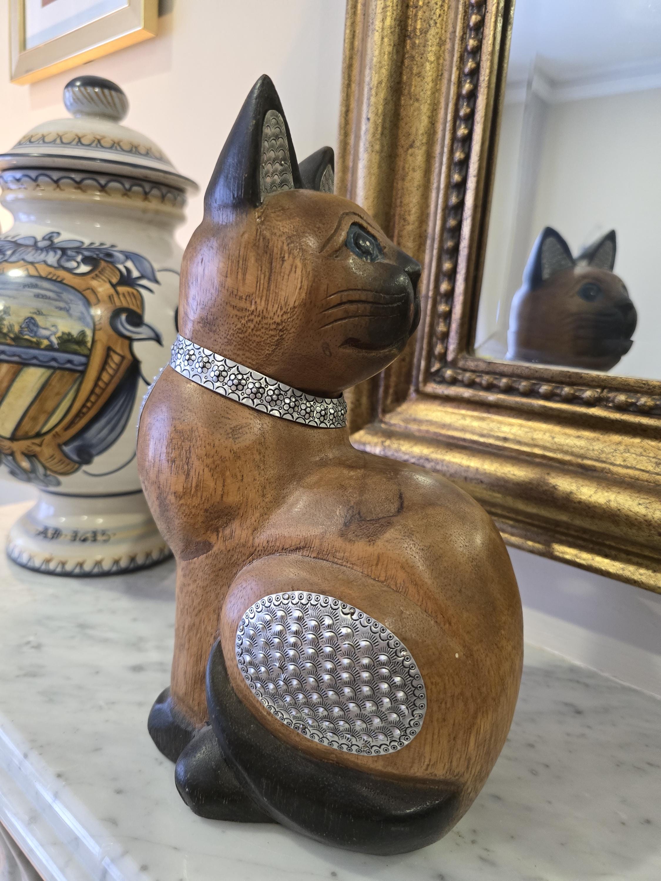 ​Perfect For: Cat lovers and Siamese enthusiasts. Adding a sophisticated touch to a mantel, bookshelf, or vanity. A unique housewarming gift for lovers of handmade, global decor.