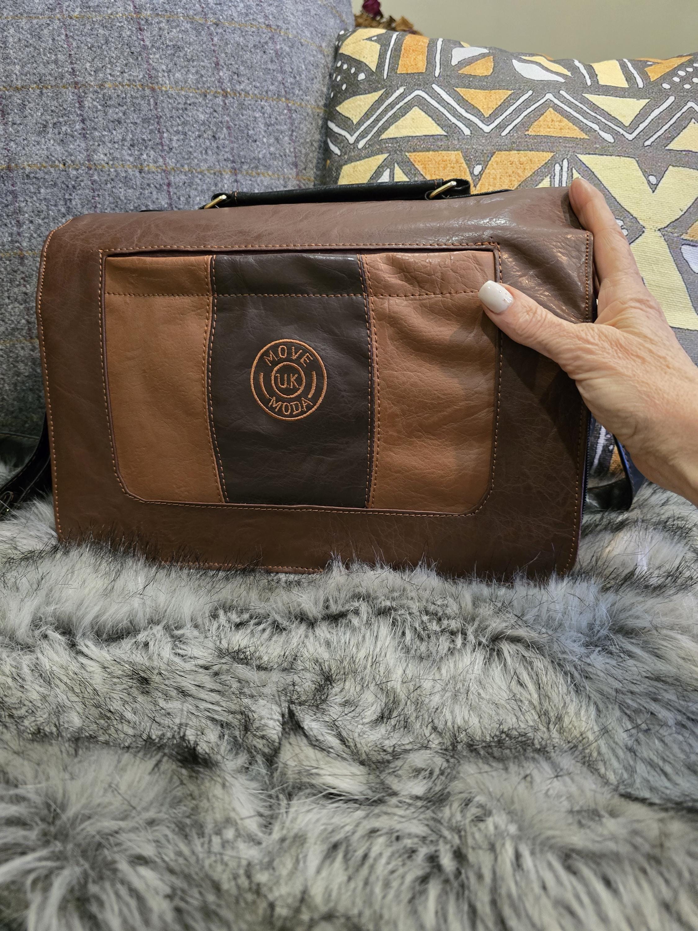 ​Embrace a timeless, scholarly look with this retro MOVE MODA U.K. satchel bag. This retro piece stands out with its striking triple-tone panel design and a distinctive high-shine finish that gives the leather a smart, polished feel.