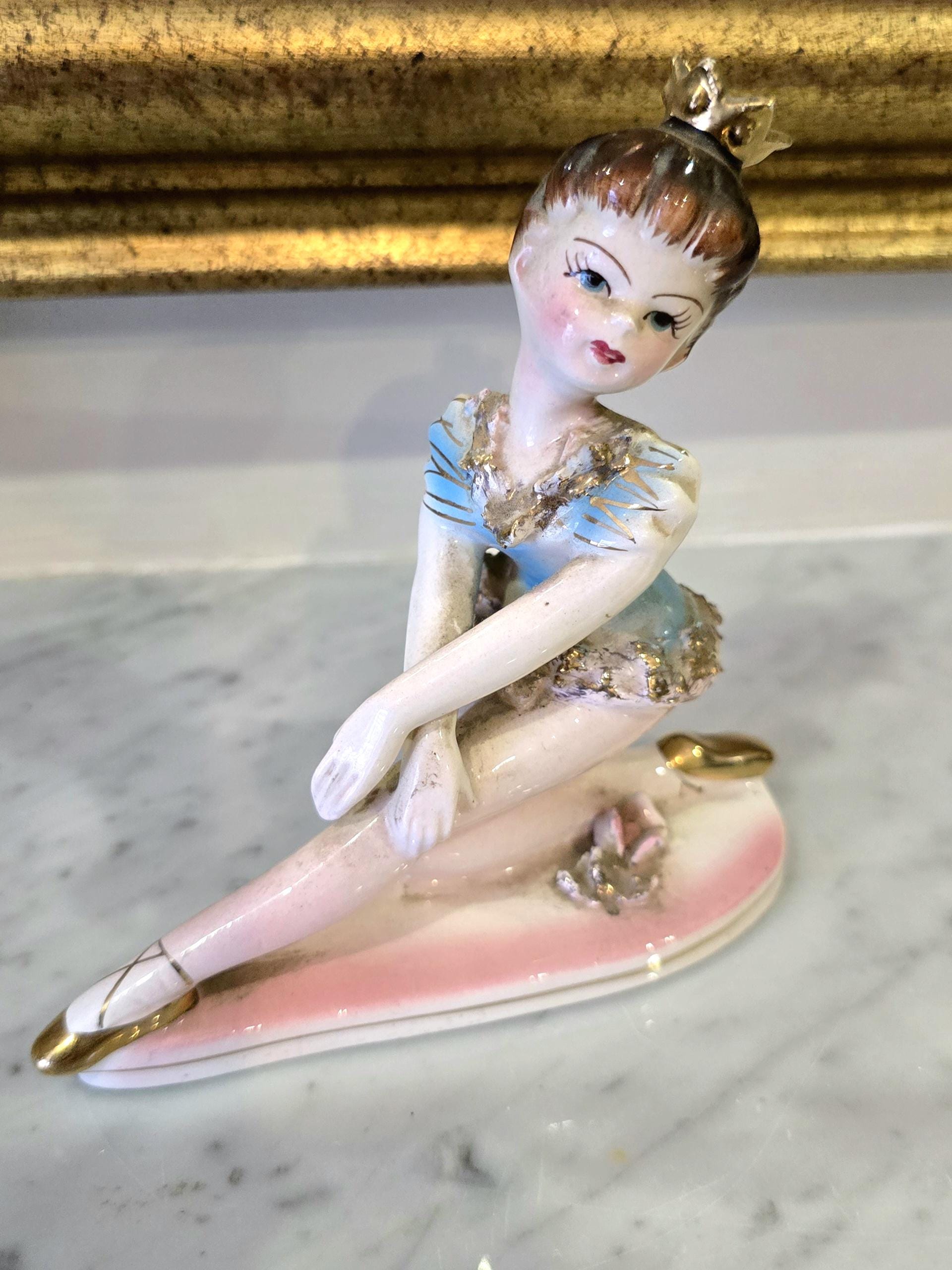 Vintage Ceramic Ballerina Figurines - 1950s Kitsch Mantel Decor