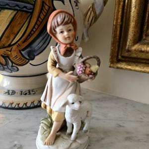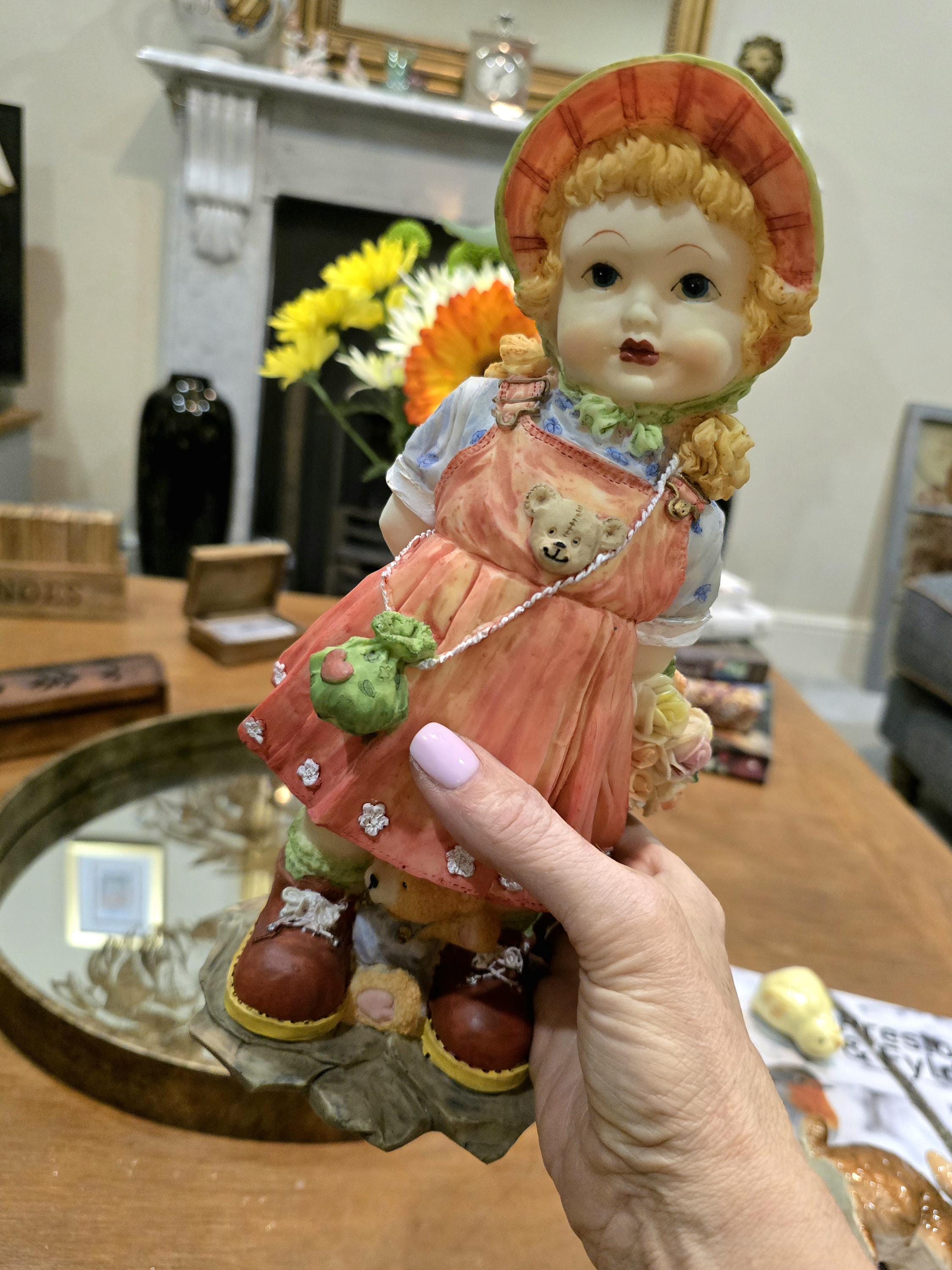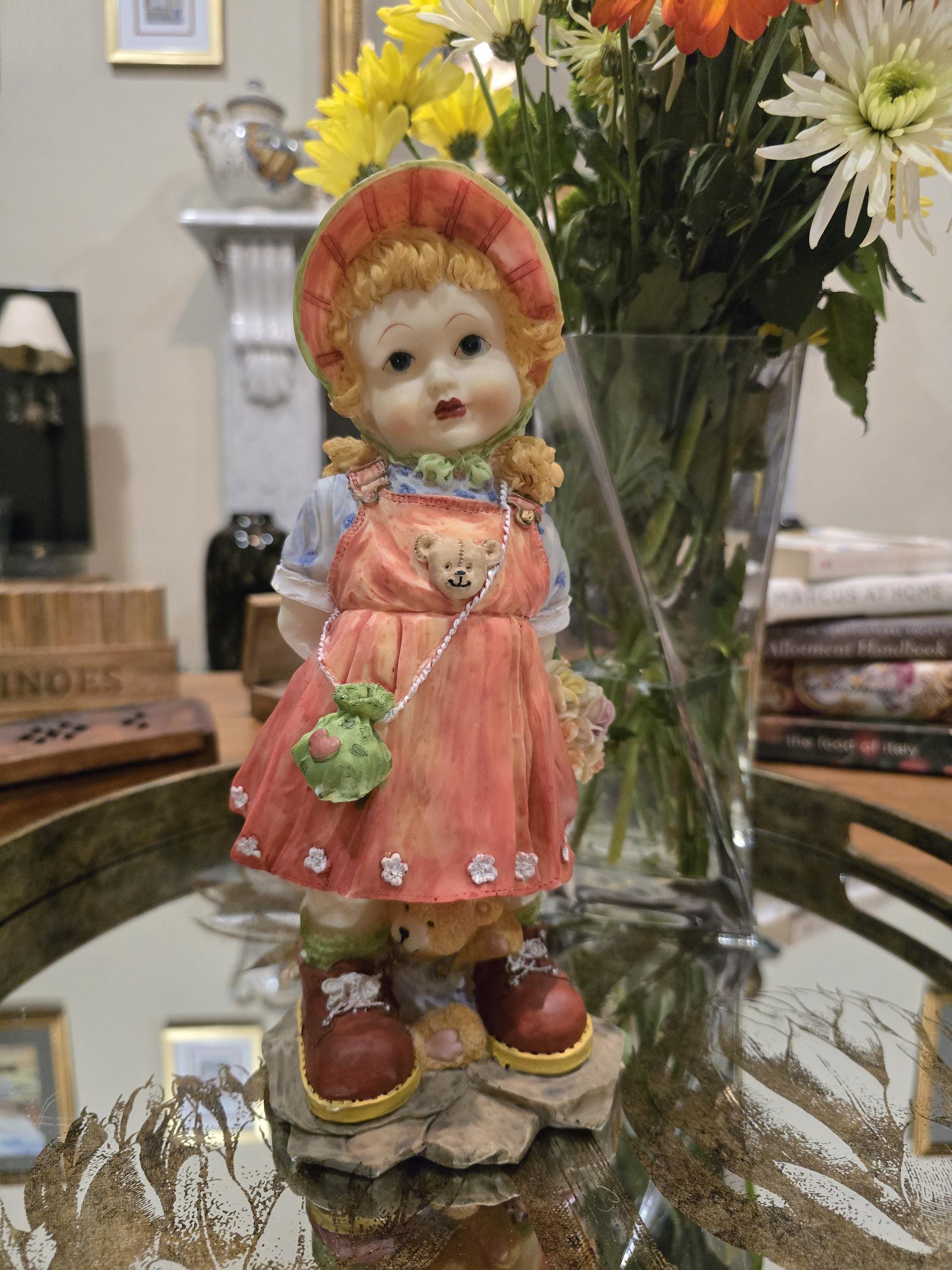 Large Kitsch Girl Figurine | 1990s Retro Resin Statue, Cottagecore Decor