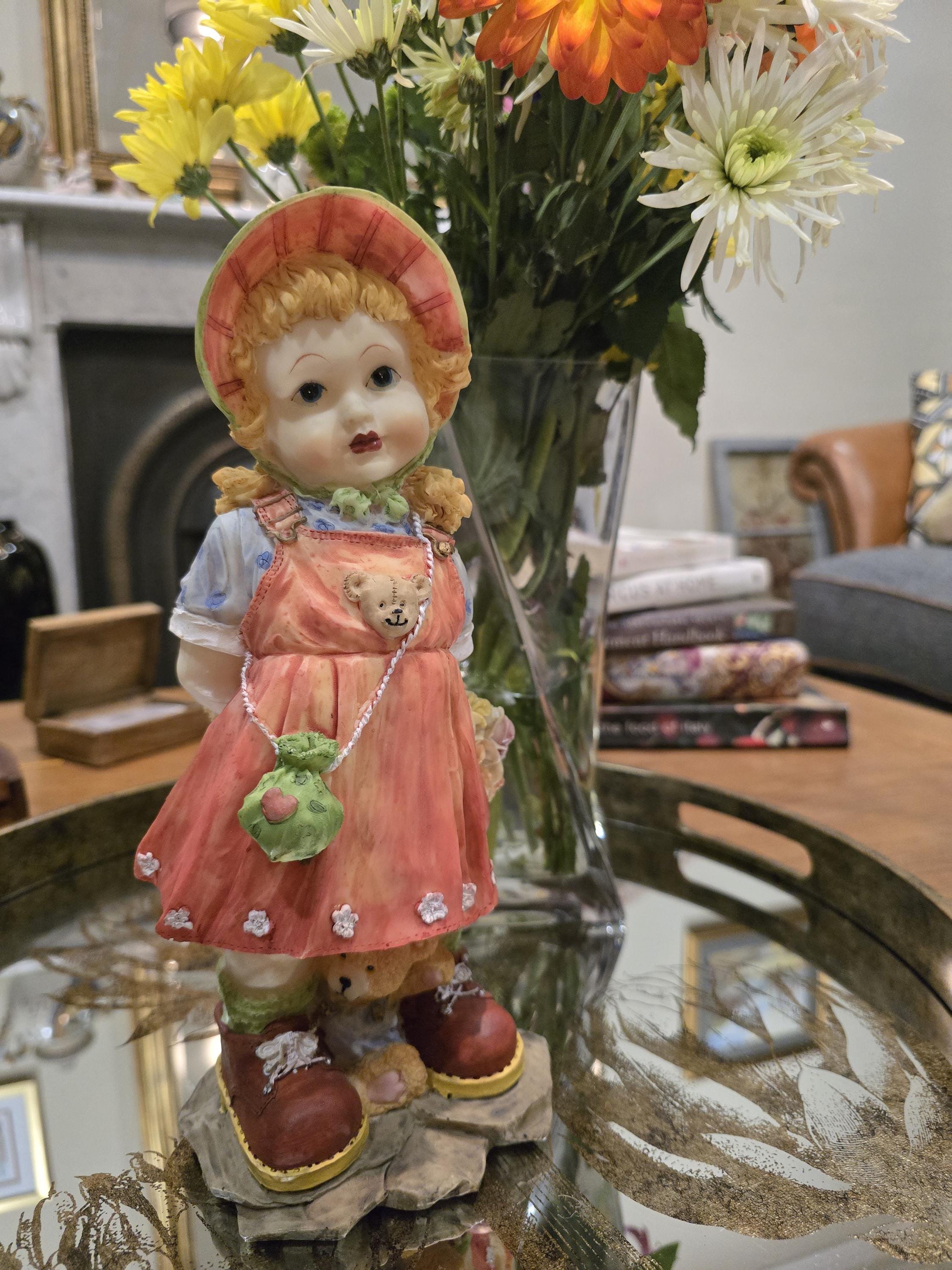 Add a touch of whimsical retro charm to your home with this large, beautifully detailed kitsch girl figurine.