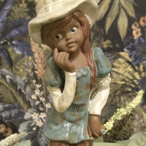 ​In lovely vintage condition. The piece displays a natural aged patina with fine crazing in the glaze, adding to its authentic character. There are no significant chips or cracks. The base is hollowed, typical of cast ceramic figurines. Please refer to the photos for a detailed view of the texture and finish.