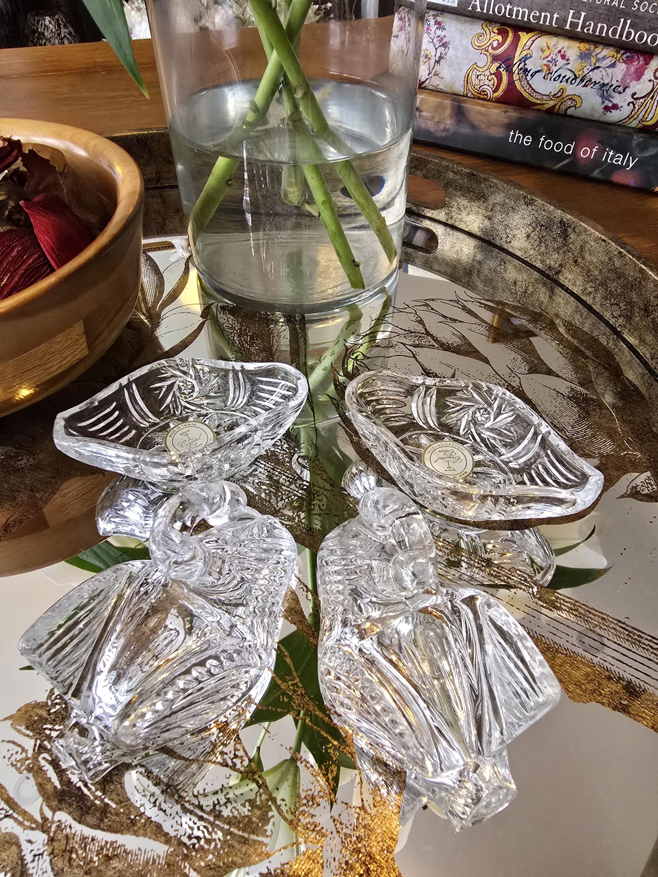 ​Condition: Excellent vintage condition. No chips, cracks, or cloudiness. Both pieces still retain their original "Made in Taiwan" 24% Lead Crystal stickers.