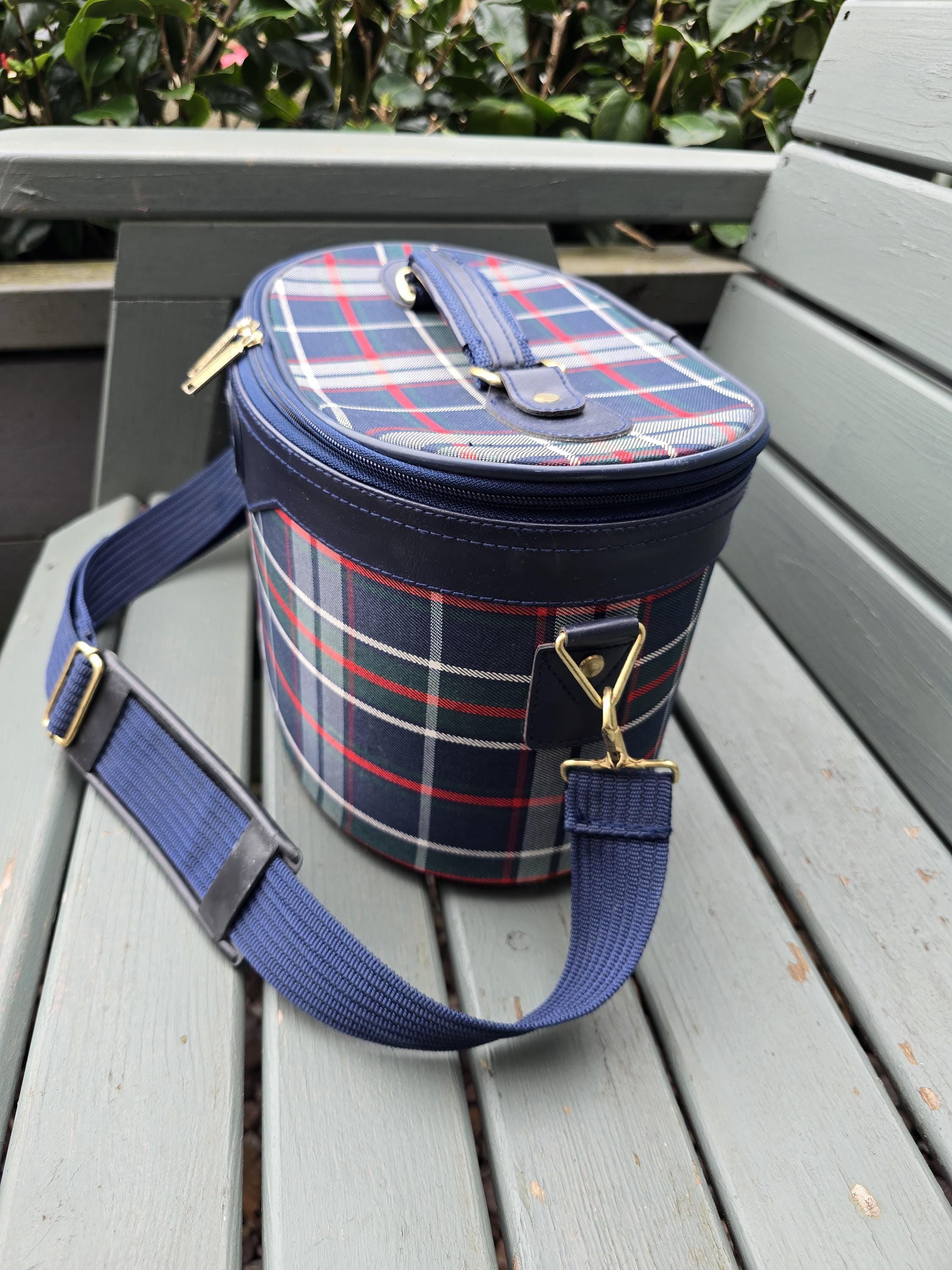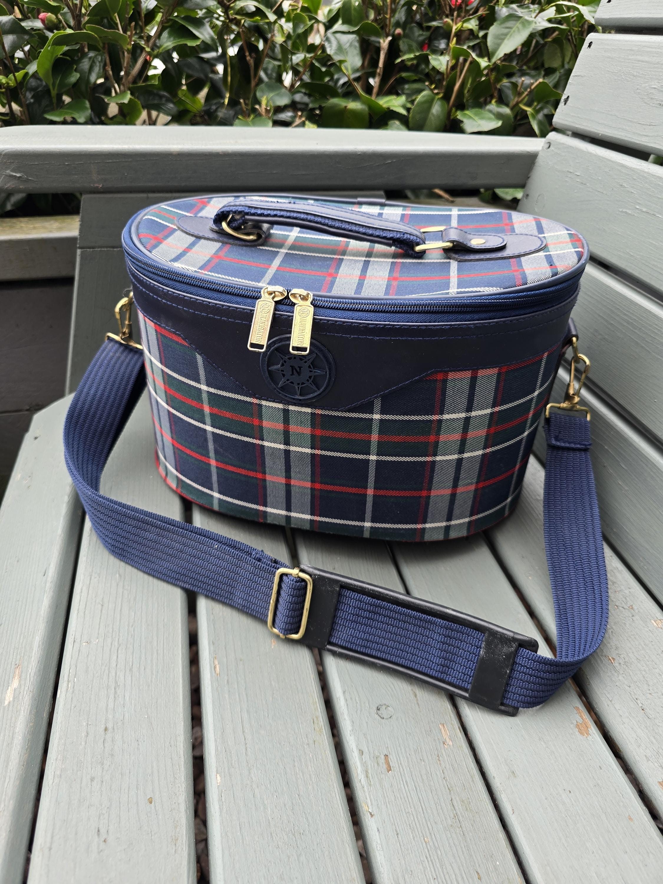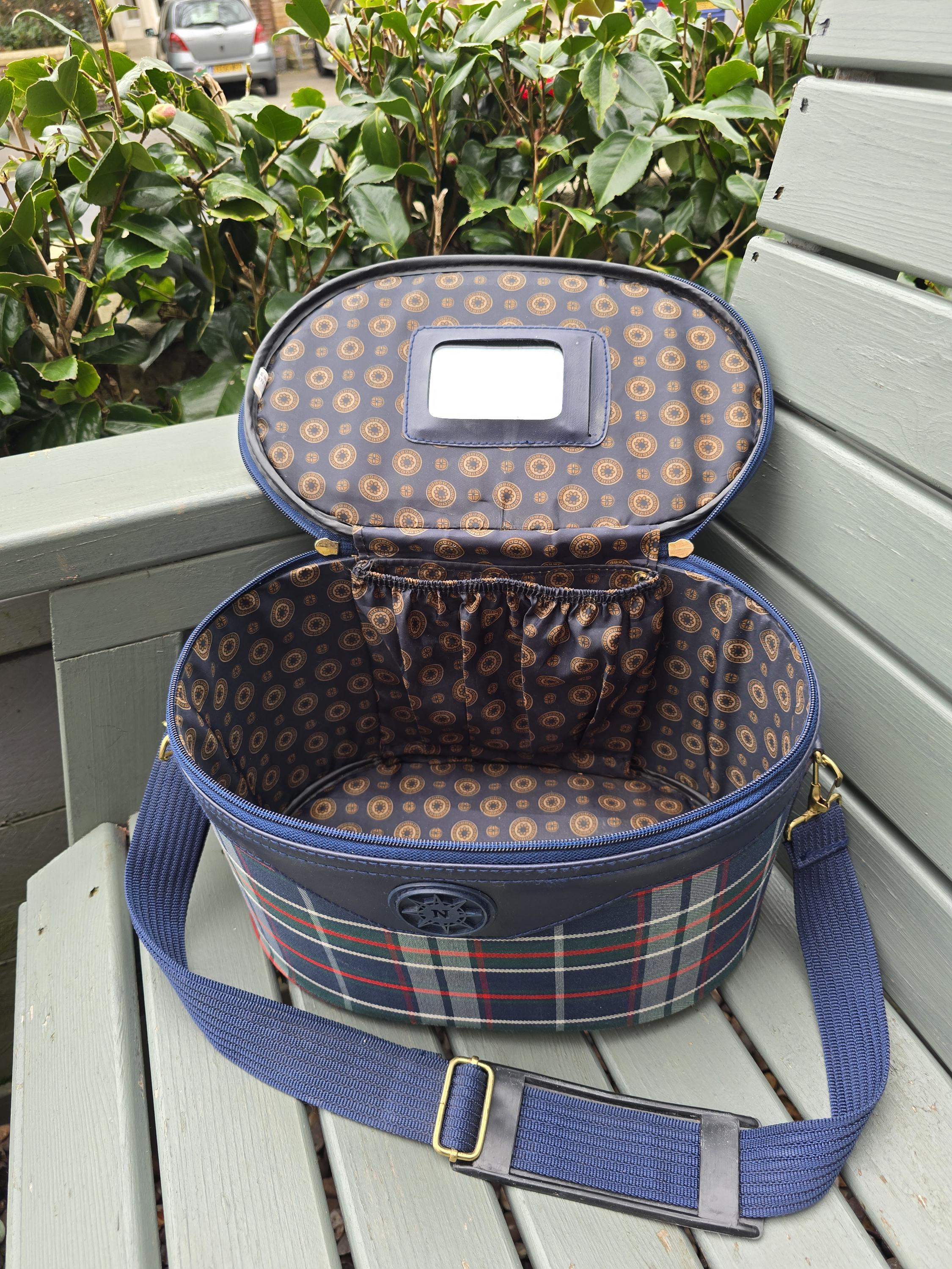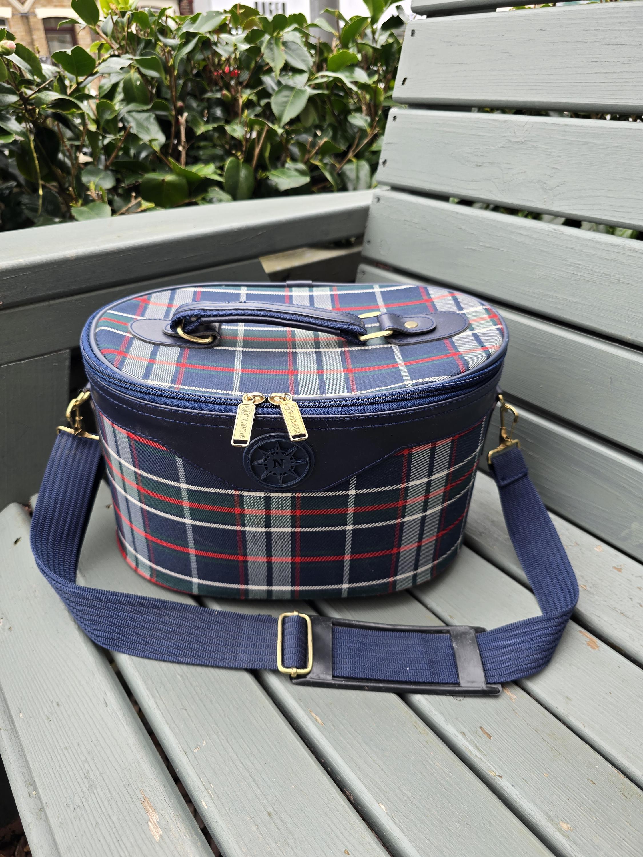 Vintage Navigator Plaid Train Case – Tartan Vanity Bag with Mirror, Strap