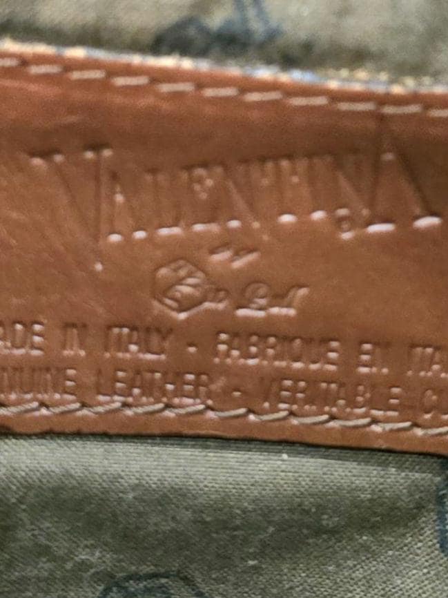 The interior is clean with the original leather "Made in Italy" tag intact. Please see photos for a closer look at the leather's unique texture.