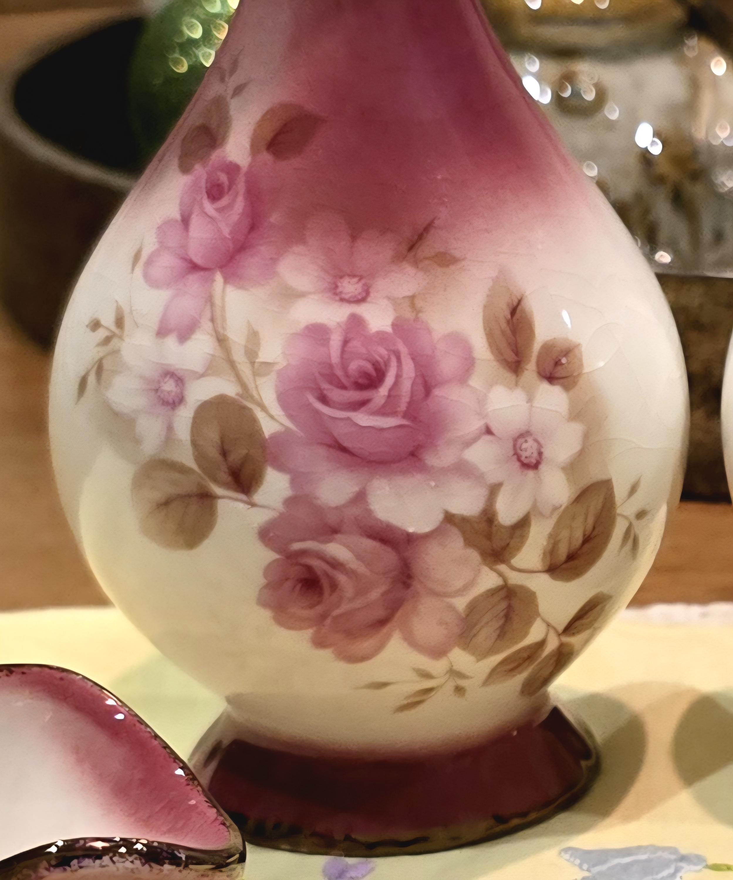 ​Design: Shaded pink-to-white porcelain with romantic rose motifs and gold gilt.
